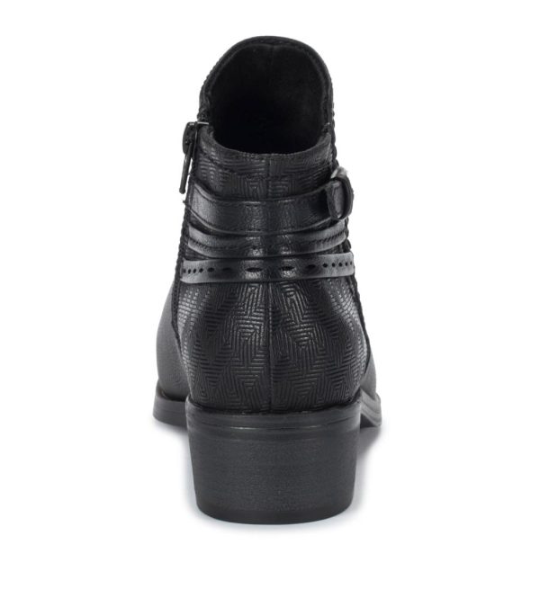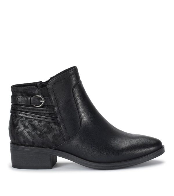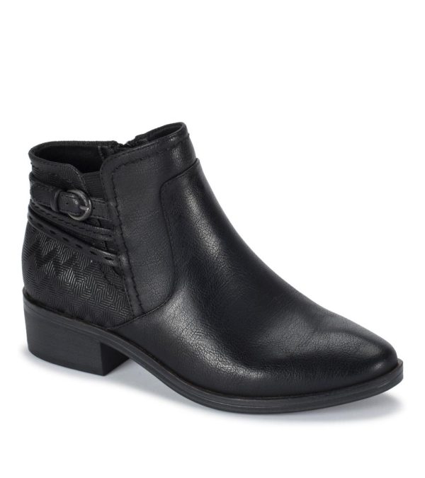 The Baretraps Medley is the perfect three season ankle bootie.This low cut bootie is built on our Baretraps cushioned insoles for superior comfort and features a synthetic upper construction with side zippered entry, a wide block heel with a decorative buckle.