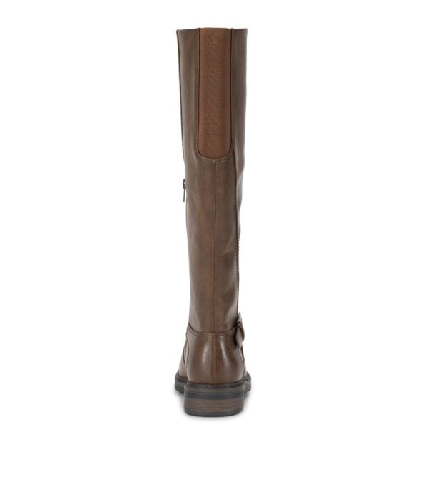 Soak in all the Fall season has to offer in the Baretraps Autumn riding boot.This tall shaft boot is constructed of premium synthetic materials and features a zippered closure, a chunky block heel with treaded sole and a fashionable buckle closure.