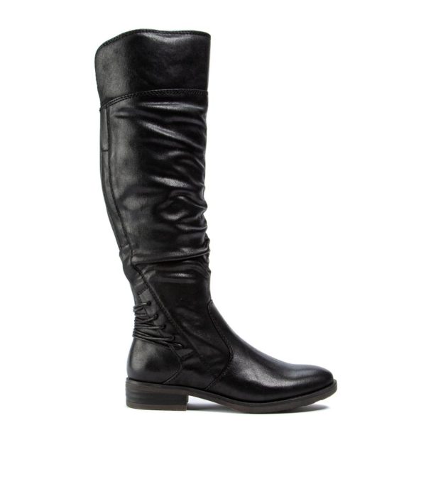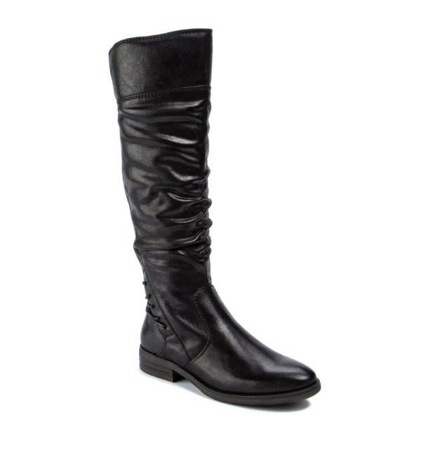 Wow them all in Averil, a stylish update to your classic riding boot! The stretch back shaft is accentuated with an eye-catching lace detail, and rouching on the front is so very now. The round toe and low heel keep things comfortable and casual, and the inside zipper makes for easy, everyday wear.