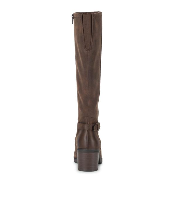 Looking for a tall boot with a little bit of attitude? Our Baretraps Fandango tall riding boot is just what you’re looking for.Featuring a decorative heel strap and metal buckle, synthetic leather upper construction and side zippered entry.All built on our Posture Plus+ insoles for comfort that last all day.