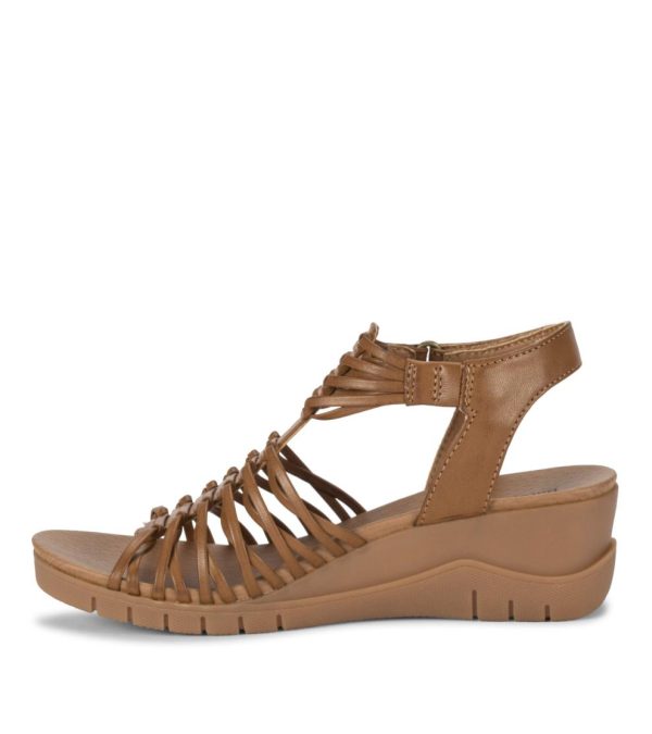 Comfort and style are not mutually exclusive.The Baretraps Cagney women’s wedge sandal effortlessly blends a fashionable heel in our classic comfort footbed with stylish woven synthetic upper straps with an adjustable hook and loop closure for a secure fit.